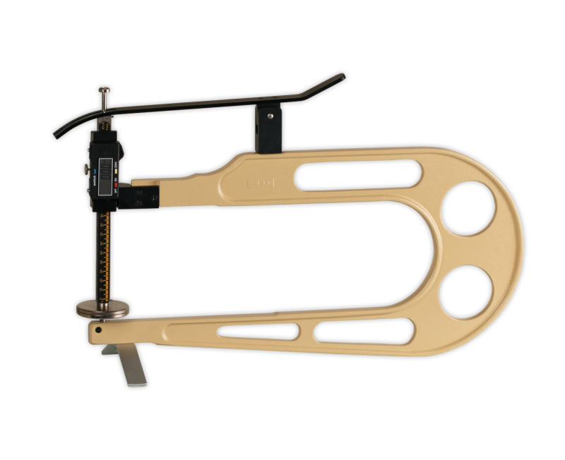 The BDTG-350-75 digital thickness gauge is engineered for applications requiring greater measuring capacity and deeper sample access. Suitable for leather, textiles, cardboard, felt, rubber, sheet metal, foil, plywood and plastics, it delivers a stable 0.01 mm resolution across the full 0–75 mm range. Its extended 350 mm jaw depth allows precise measurement of large or wide-format materials while maintaining consistent accuracy.