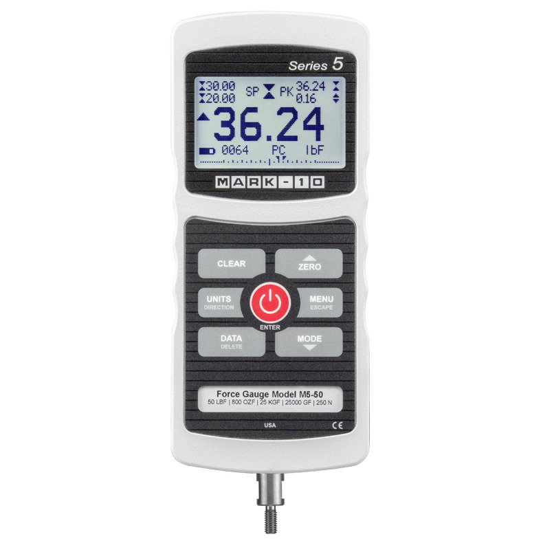 The EKM5 accommodates a memory up to 1000 measurements with statistical calculations, average force over-time and data output.
