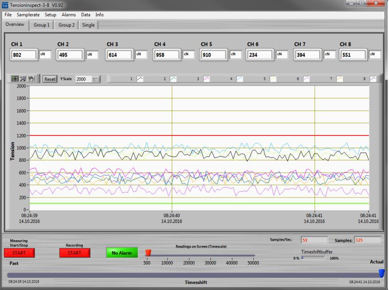The program is available for single and multi chanel systems (1, 4, 8, 12, 16 or 32 connected tension meters)